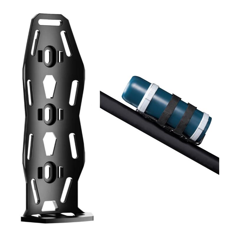 Speaker/Bottle HolderColor: BlackMaterial: Engineering PlasticApplication: Fixing speaker or water bottle on the frameSize: 23*8.8cmWeight: 78g