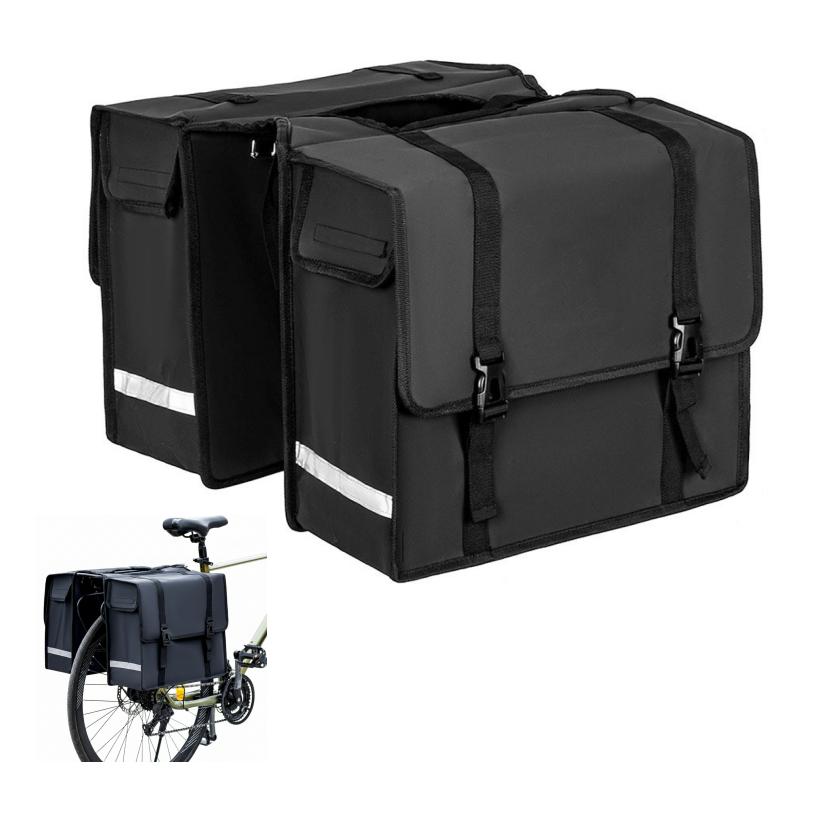 Bicycle Pannier BagMaterial: 500D PVCColor: BlackCapacity: 44LFeatures: Waterproof, Reflective StripsSize: 16*40.5*34cm (Per side)Weight: 2kgs