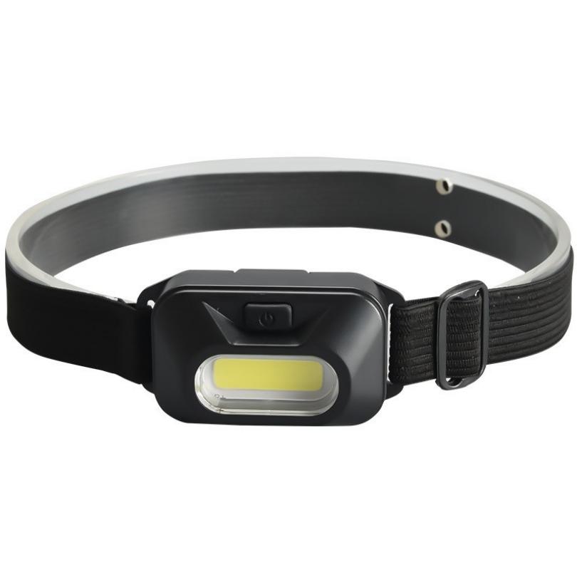 HeadlampLED type: COB ledMaterial: ABSColor: BlackBrightness: 110 lumens (white light)3 modesBattery: 3*AAA (not included)Net weight: 25.5g (including headband)Note: MOQ5000 for light body color customization